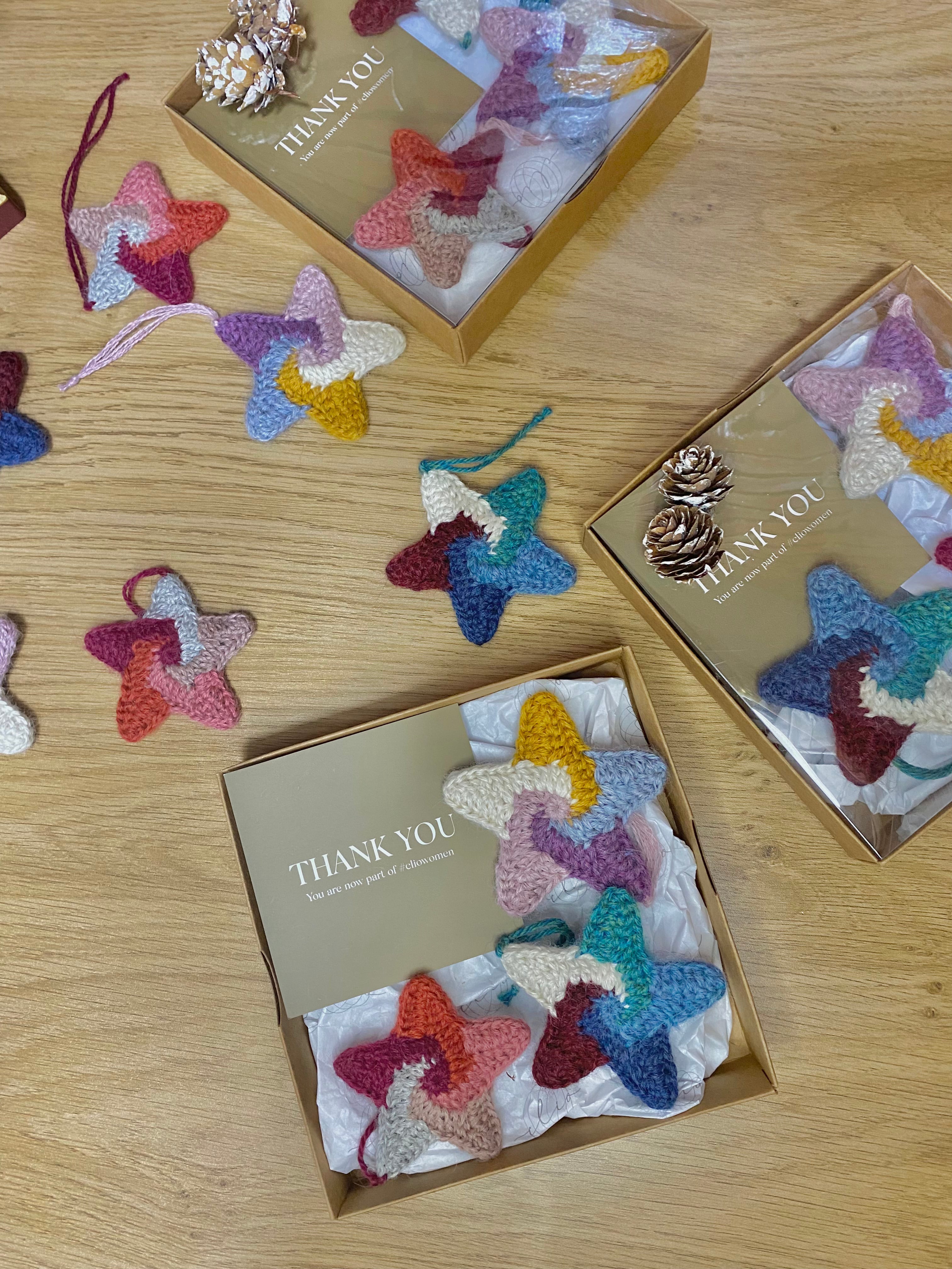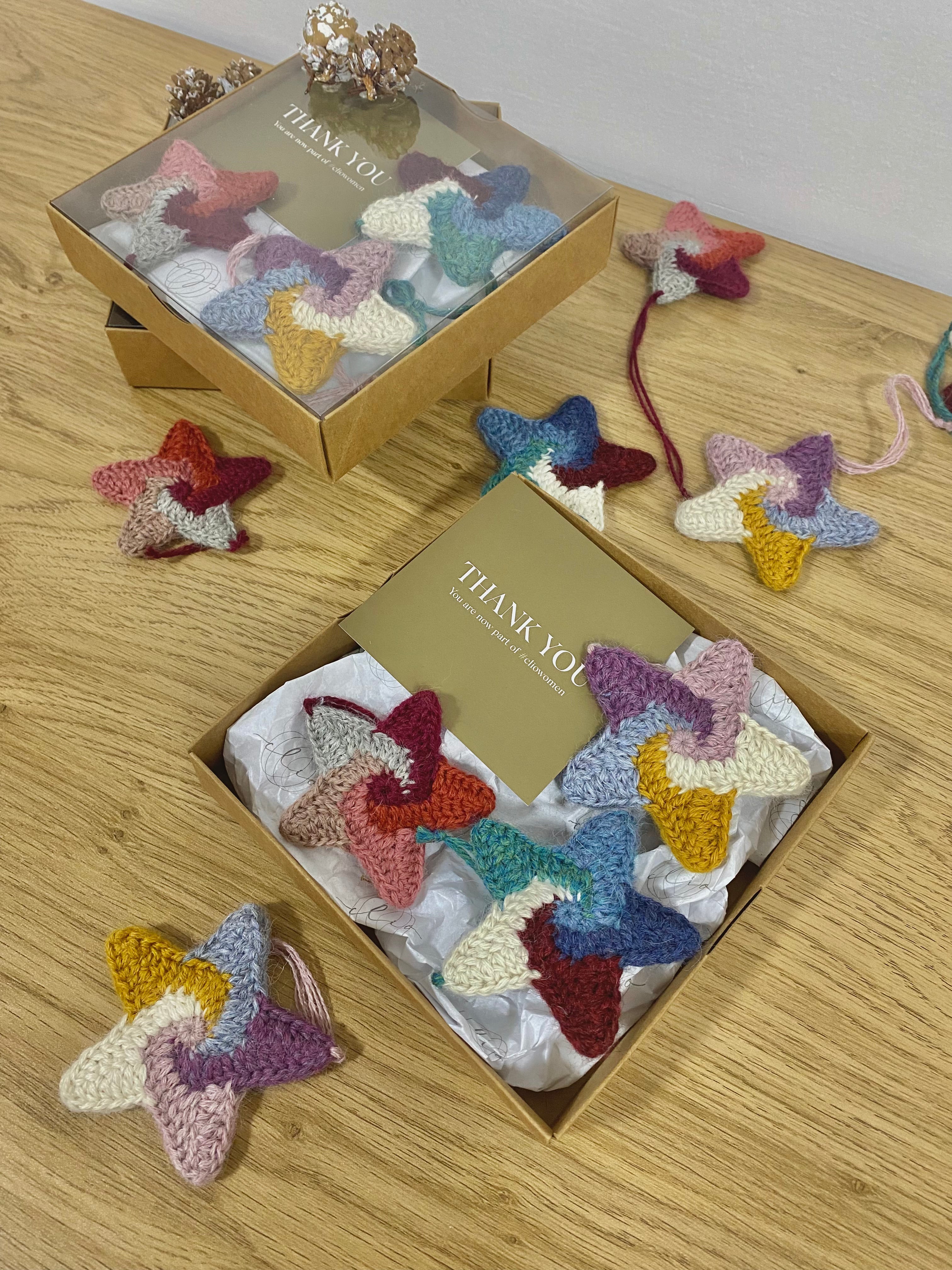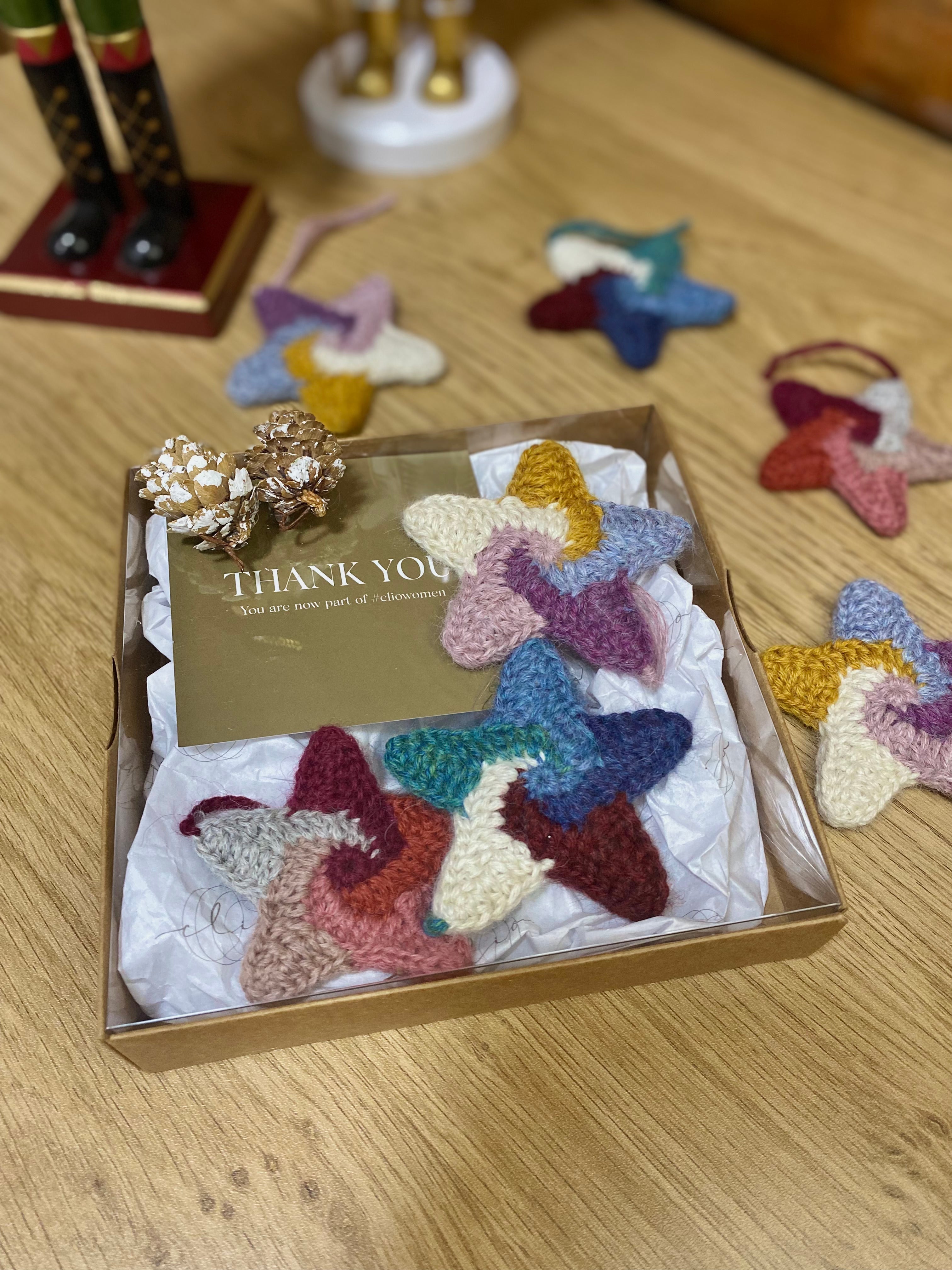 Los adornos de árbol de Navidad en forma de estrella están tejidos a mano con hilos de alpaca super fina y alpaca bebé 100%. Esto marca el inicio de nuestro Proyecto de Reciclaje, en el que utilizamos hilos sobrantes de nuestras colecciones anteriores y los transformamos en piezas de arte, contribuyendo así al cuidado del medio ambiente.