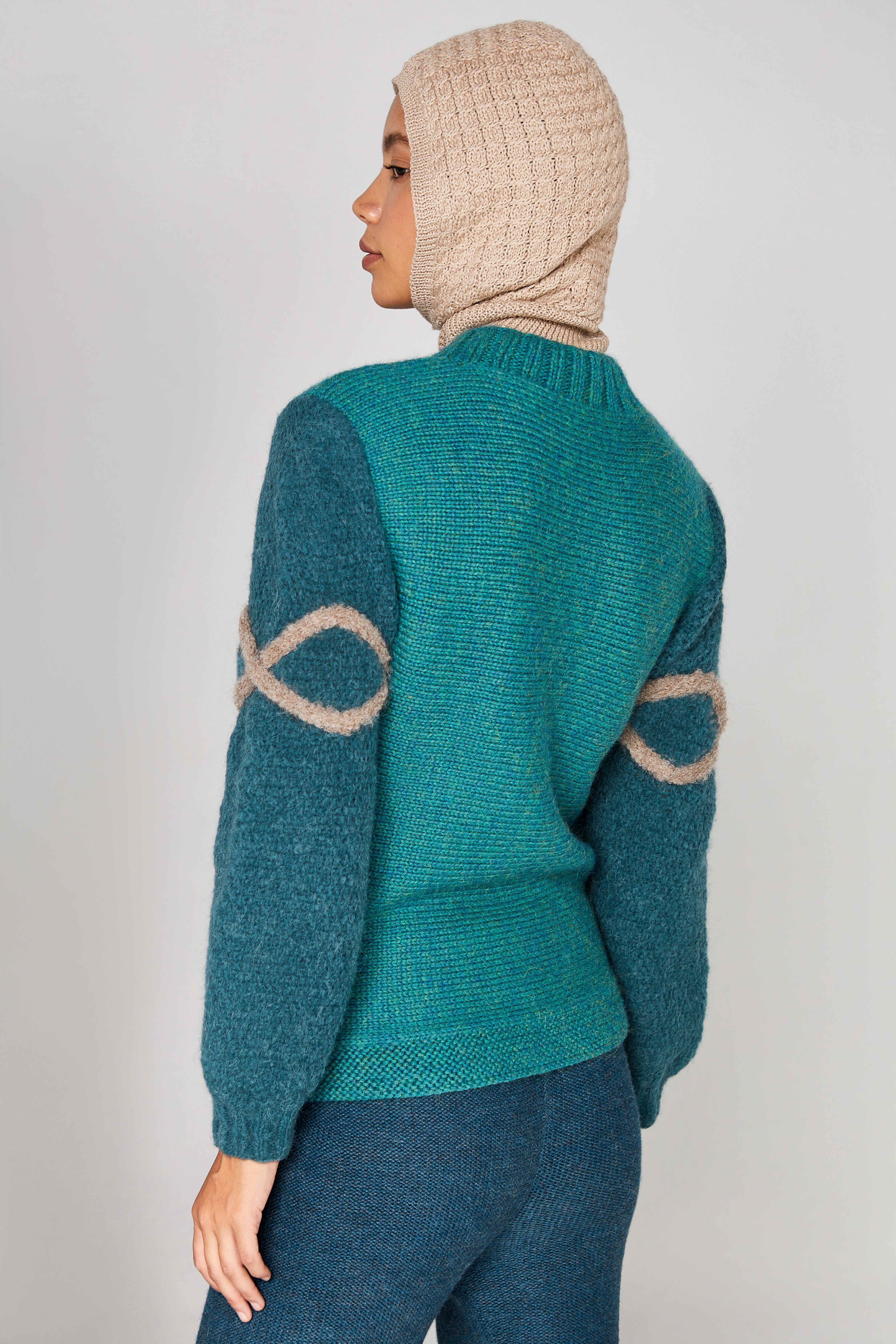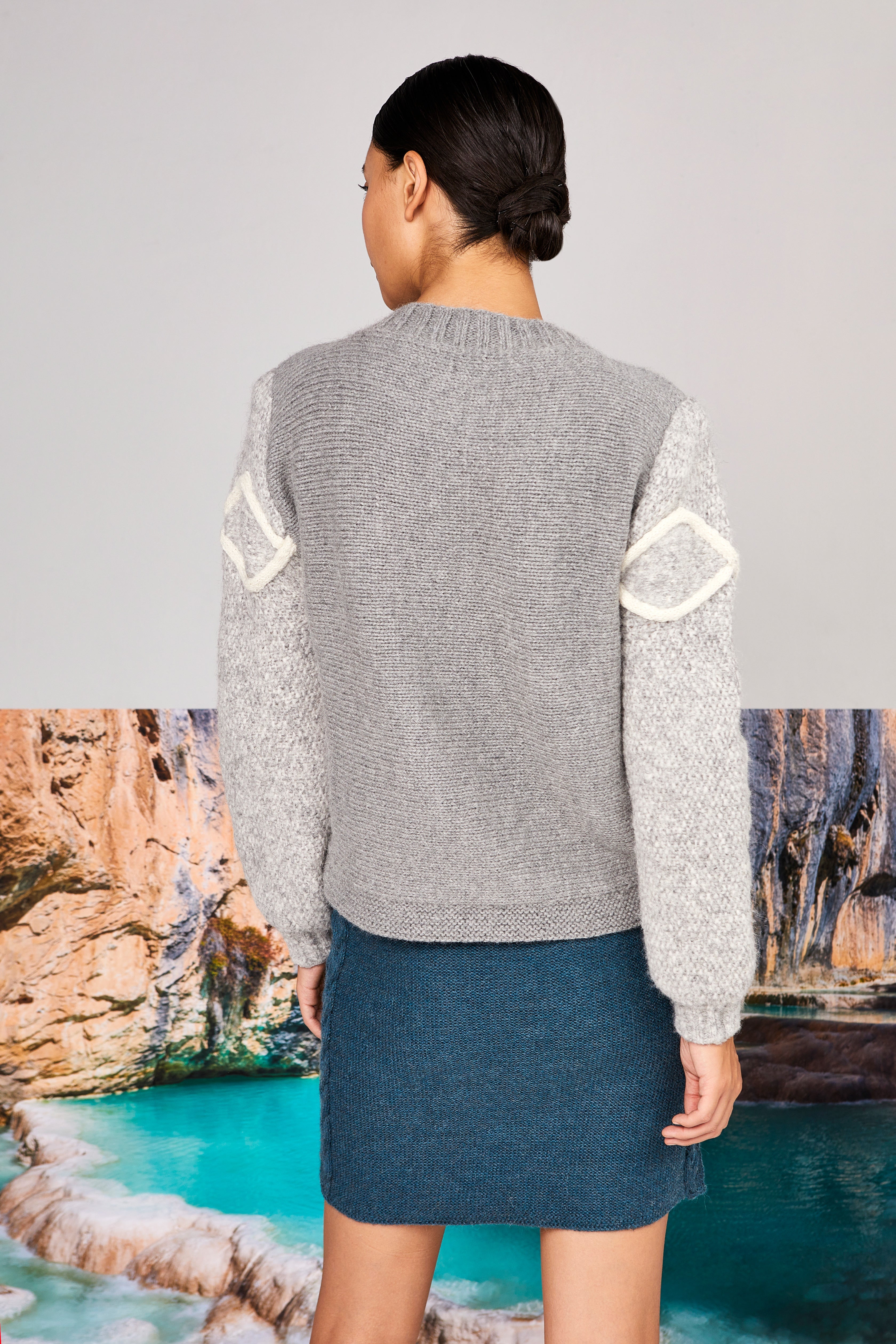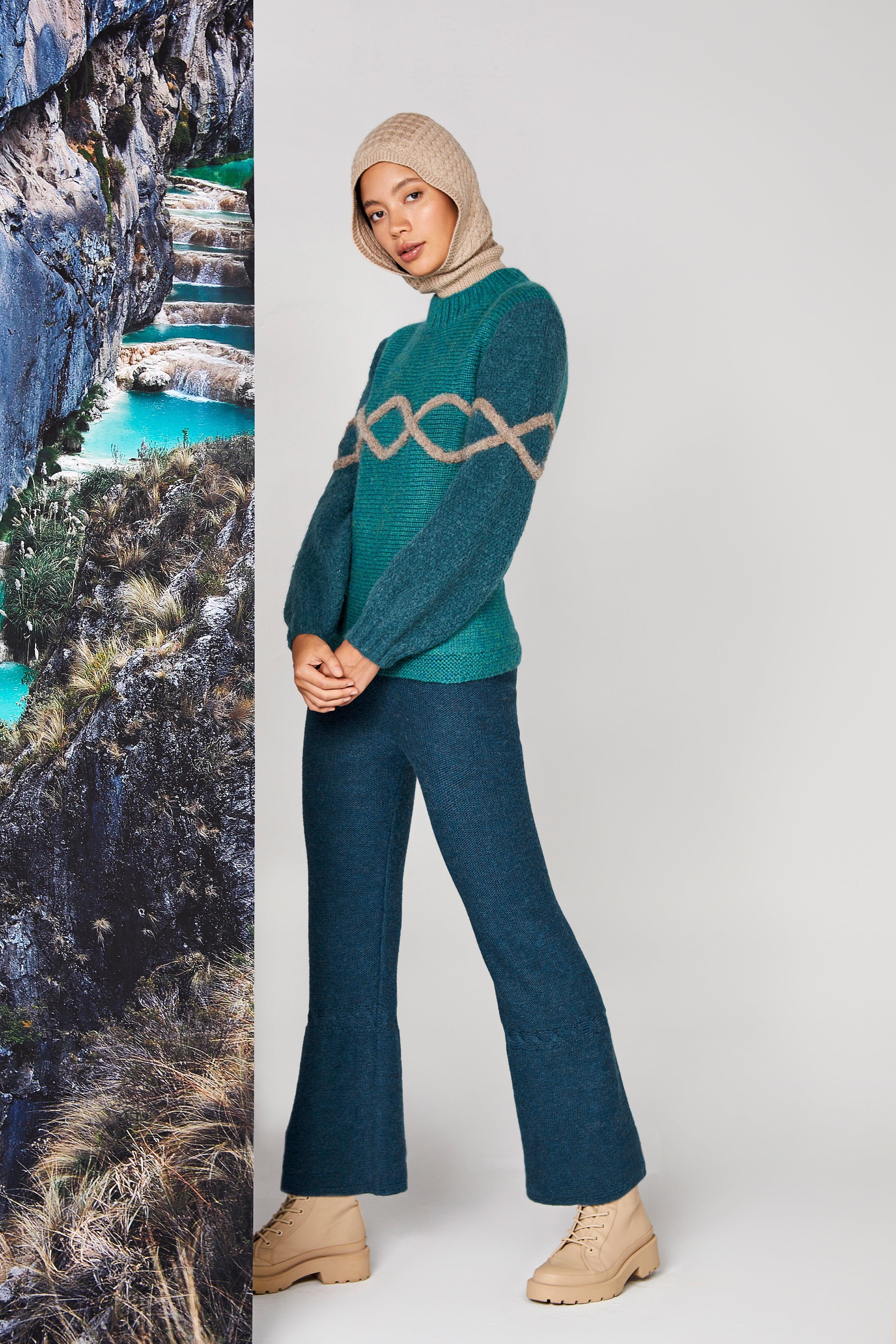 85% bebé alpaca & 10% lana merino & 5% poliamida. Tejido a mano (agujas).